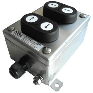 Producten > Bediening en signalering > RVS bedieningskastjes type INDEX.E.X > RVS bedieningskasten type X2 > 2 stuks dubbele drukknop – 2xNO