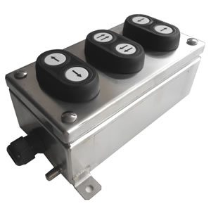 RVS behuizing met 3 dubbele drukknoppen elk voorzien van 2xNO contact
