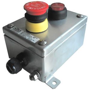 RVS behuizing met 1 stuks signaallamp (LED) rood + 1 stuks noodstop