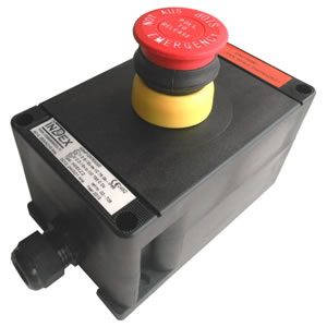 Polyamide behuizing met noodstop (push-pull) 1xNO + 3xNC contact.