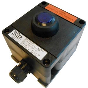 Polyamide behuizing met verlichte drukknop – 1xNO contact / LED blauw